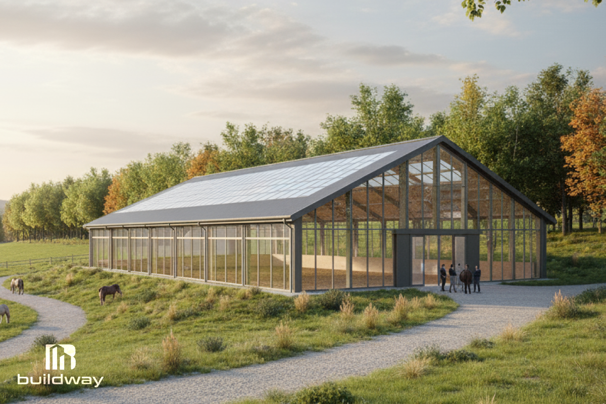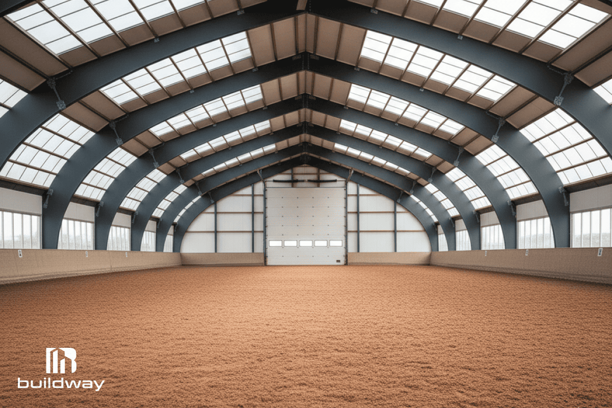 The aim of the project was to create a safe, comfortable, and weather-resistant space for horses and riders. The client wanted a covered riding arena that could be used all year long for both everyday training and competitive events. The main goal was to create a building with lots of room and strong weather resistance.