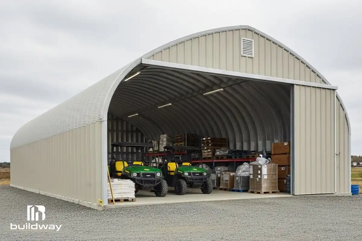 Buildway’s heavy equipment storage buildings protect valuable machinery, support smooth access, and create reliable heavy equipment storage solutions for construction, farming, and industrial needs. Here’s what makes Buildway’s equipment storage stand out: